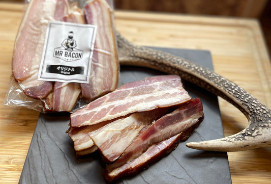 以前に美味しいベーコン食べてからどれくらい?一週間前? 月?1度も美味しいベーコンに出会っていない??私達にお任せください。 愛情を込めて燻製をした唯一無二のベーコンを日本中の皆様に届けします。添加物不使用のベーコン専門店のミスターベーコンは、伝統的な北米スタイルのスモーキーで尚且つ甘くてとびきりおいしいベーコンをあなたのご自宅にに直接お届けします。 アメリカから直輸入した豚肉と国産の厳選された食材の両方を使用し、日本中をどこ探しても見つけられない、